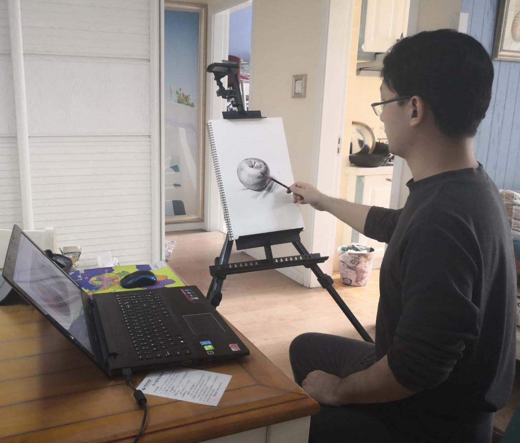 在以往的教学模式中,素描教学可以随时进行一对一的个性化指导,但是线上教学不具备这种便捷的实操条件。因此,两位老师经过认真研究,总结出一套静物素描绘制的规范流程,把整个绘画过程分为轮廓、结构、明暗、加重、揉擦、深化和调整七个步骤。这为保证和提升该课程的线上教学效果,提供了坚实基础。教学过程中,两位老师按照该流程,结合典型实例,详细解读每个步骤的技法和要点,并设计优质的视频教学资源予以辅助,让学生们跟随视频进行同步训练,进而掌握绘画要领。实事证明,这一套教学技法和流程设计,取得了极好的教学效果。在此基础上,按照绘画教学步骤设置相应的时间节点,让学生提交相应步骤的素描过程图。在网络授课中,实现线上线下教学的良好结合。在备课过程中,张艳老师录播了经典素描作品赏析;王美达老师利用有限的条件,自备工具,亲自示范,拍摄制作了原创教学流程,丰富教学内容,提升教学效果。