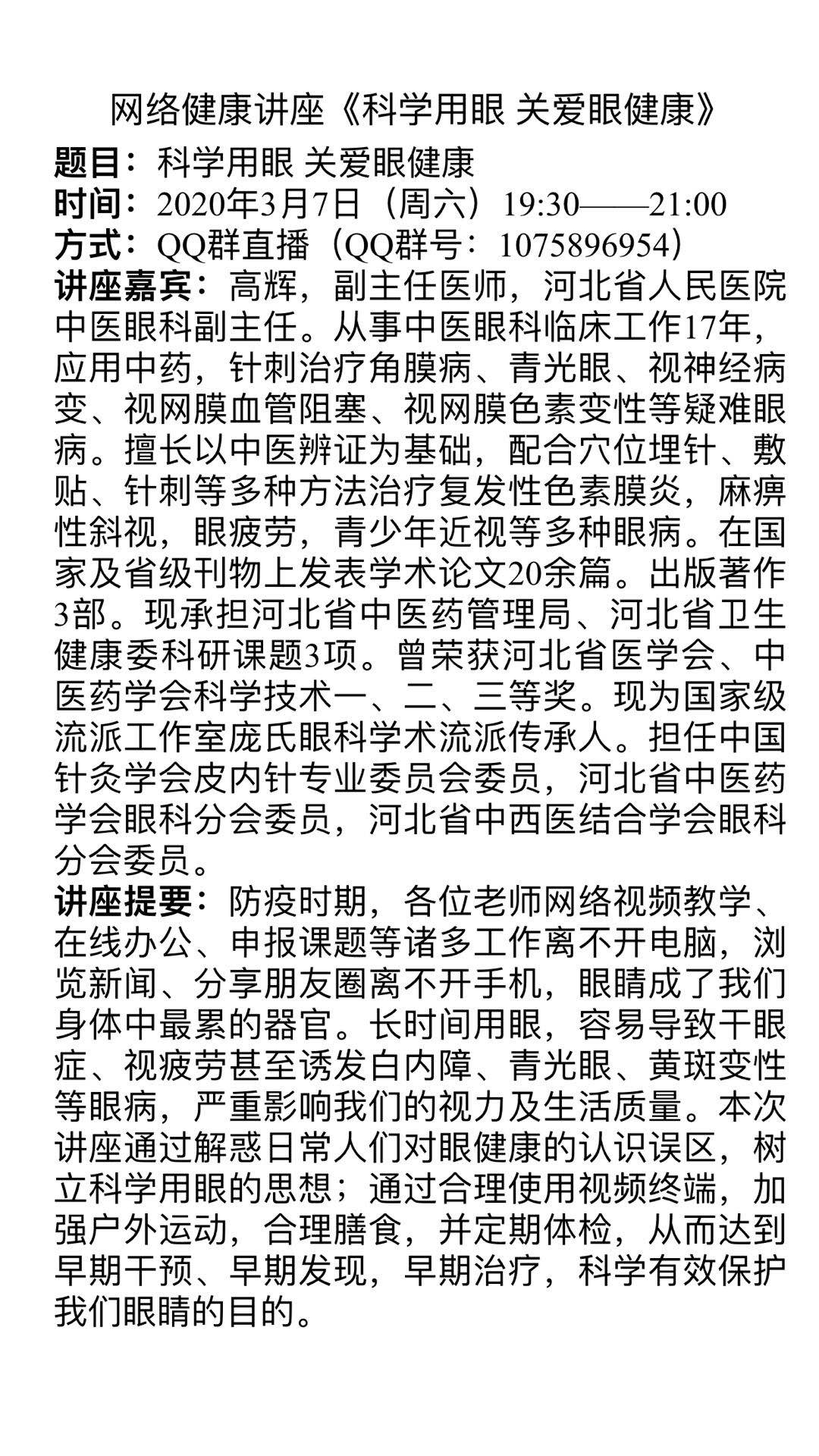 分工会紧扣“健康防疫”主题开展系列线上活动,一是《科学用眼 关爱眼健康》QQ群课堂讲座,与经济管理樱花动漫