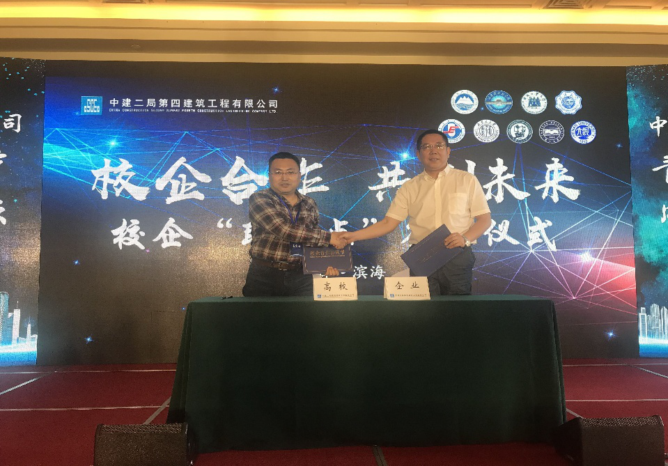 赵庆新副院长及学生科燕博老师于天津滨海新区参加了该公司主办的“四合之约青年人才成长论坛”暨中建二局2019年实习生招聘启动仪式,共商校企合作及青年人才成长事宜。