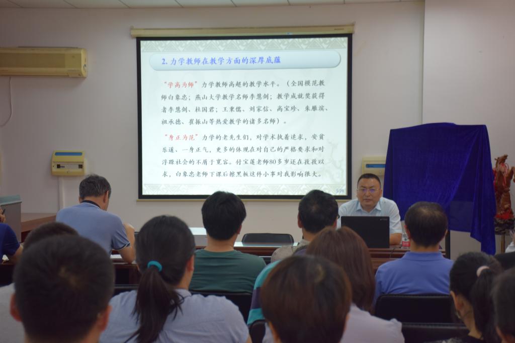 赵庆新老师以“师德内涵”开篇,通过讲述自己参加工作以来亲身经历的一个个建工故事,鲜活地呈现出力学教师在教学方面一直传承的严谨求实的优良传统。通过教师对教学的完美追求、对学生的无私关爱、老教师对青年教师的悉心指导三个方面,阐述了建工人为樱花动漫 发展默默付出,用自己实际行动讲好建工故事的精神品质。最后号召系主任带好队伍,鼓励教师潜心教学,共同发展,统一在师德与专业发展的最大公约数下,形成一个活力四射的集体。