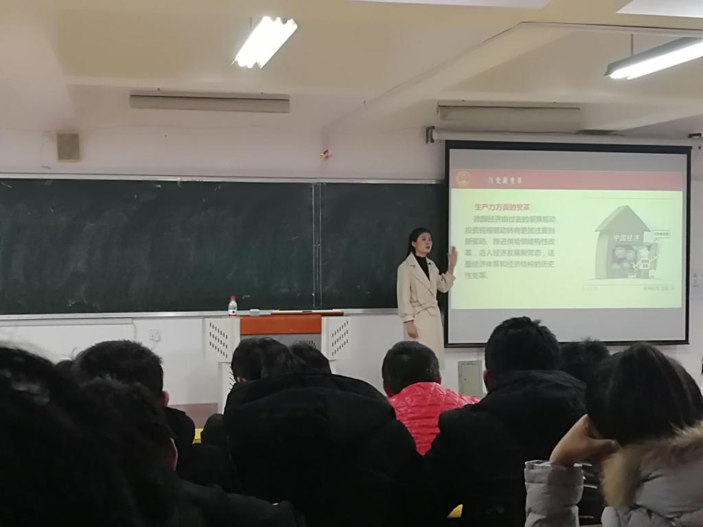 在讲座中,于秋丽老师为同学们详细讲解了中国共产党第十九次全国代表大会的大致内容,并对习近平主席对青年与国家关系的看法进行分析,寄语国家青年们:青年兴则国家兴。然后介绍了党的十九大中提出的我国当今国民收入不充分,不平衡的现状及原因。最后,于老师向同学们提了四点建议,希望同学们充分学习党的十九大精神。