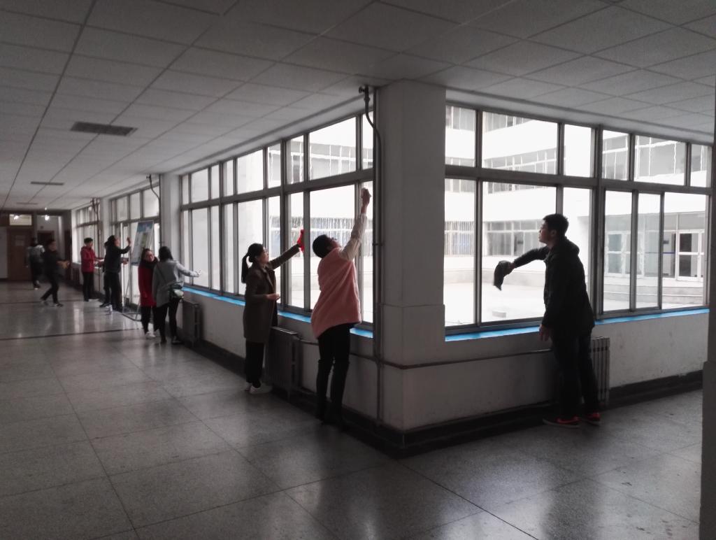 20日下午,在支部书记张娟娟老师的带领下,全体学生分成三组分别对建筑馆的每层玻璃进行擦拭,楼道进行打扫。在活动过程中,同学们干劲十足,展现了建工樱花动漫
