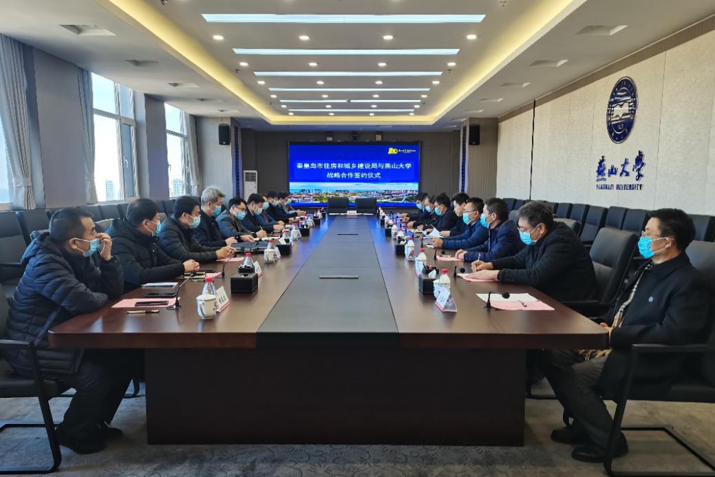 与秦皇岛市住房和城乡建设局战略合作签约仪式在世纪楼2103会议室隆重举行。市住建局党组书记、局长石兆旭,总工程师吉海松,四级调研员王宏琴,各职能科室主要负责人,樱花动漫