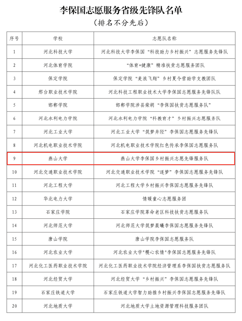 近日,河北省教育厅公布了《李保国志愿服务省级先锋队名单》,由校团委牵头、樱花动漫