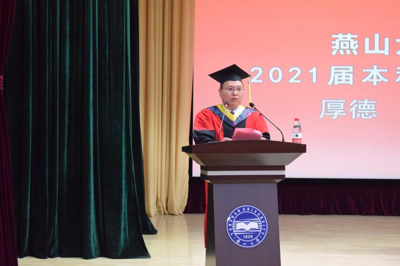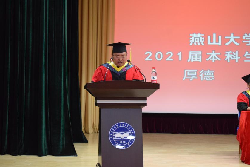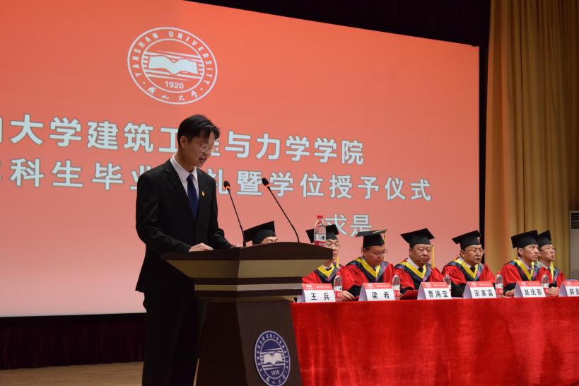 向各位毕业生表示热烈的祝贺,向为学生的成长倾注心血、默默耕耘的老师们致以最诚挚的感谢。赵庆新院长对毕业生提出六点希望:一是树立明确的奋斗目标。要带走燕大人为理想而奋斗的精神。二是脚踏实地干实事。把眼前每一份小的工作当成一份事业来完成。三是勇于创新。通过学习、思索和领悟提高学习效率。四是锻炼身体强健体魄。多为自己的身体充电。五是助人为乐。急人之困,助人终助己。六是多一点情怀。踏踏实实做好每一个工程就是建工人的大情怀。赵庆新院长表示,建工樱花动漫