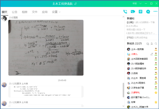 每日一题,一日一练,业精于勤。针对高等数学、工程化学、大学计算机等科目,由学委牵头,号召成绩优秀的学生担任辅导志愿者,共成立了8个线上学习小组。每日上午在群内发送当日习题,补考同学完成作业后并提交打卡,晚上群内公布习题答案。同学们在群里进行提问、交流,在讨论中加深对知识的理解,弥补知识漏洞。截至目前,每日一题活动覆盖132人次,累计出题198道。此活动帮助补考同学在假期养成了坚持学习的习惯,为开学后顺利通过补考奠定基础。