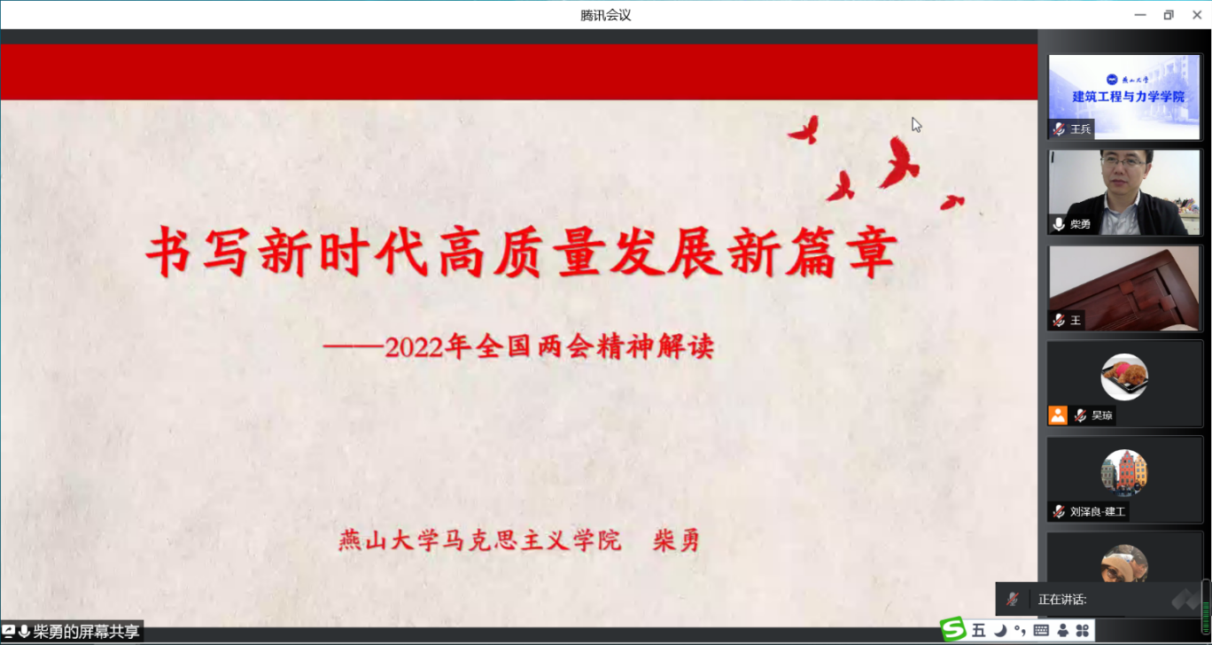 副院长柴勇教授作题为《书写新时代高质量发展新篇章——2022年全国两会精神解读》的辅导报告。全院教职工和研究生党员聆听了讲座,会议由樱花动漫