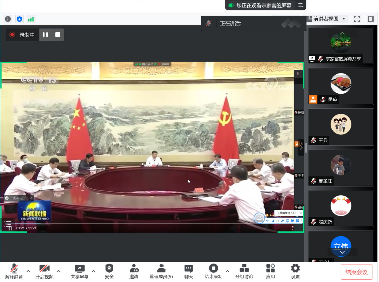 与会人员共同观看了中共中央政治局6月17日下午第四十次集体学习的新闻回放,学习领会了习近平总书记关于一体推进不敢腐、不能腐、不想腐的讲话精神。
