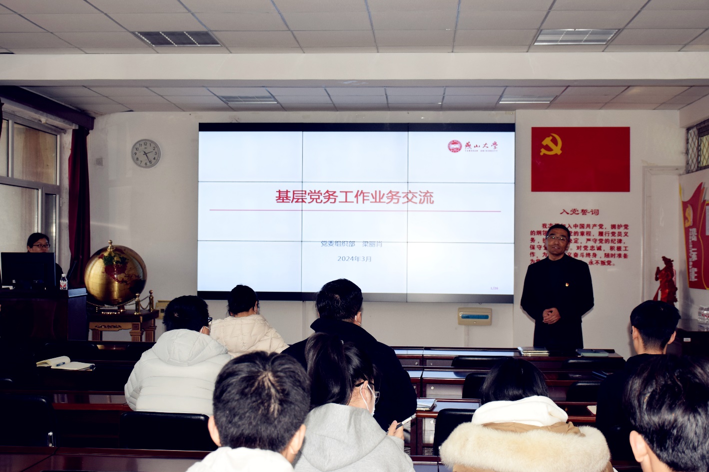 会上,学校党校办公室主任梁丽肖对党务工作者进行专题业务培训。梁丽肖主任围绕党支部工作、党员教育管理两方面内容,从党建工作的堵点、难点、痛点和短板入手,对《党支部工作手册》填写要点,组织生活会、“三会一课”制度落实及发展党员等七个基层党建中涉及的重点工作进行详尽的讲解,使大家对党务工作有了更清晰的认识和深刻的理解。