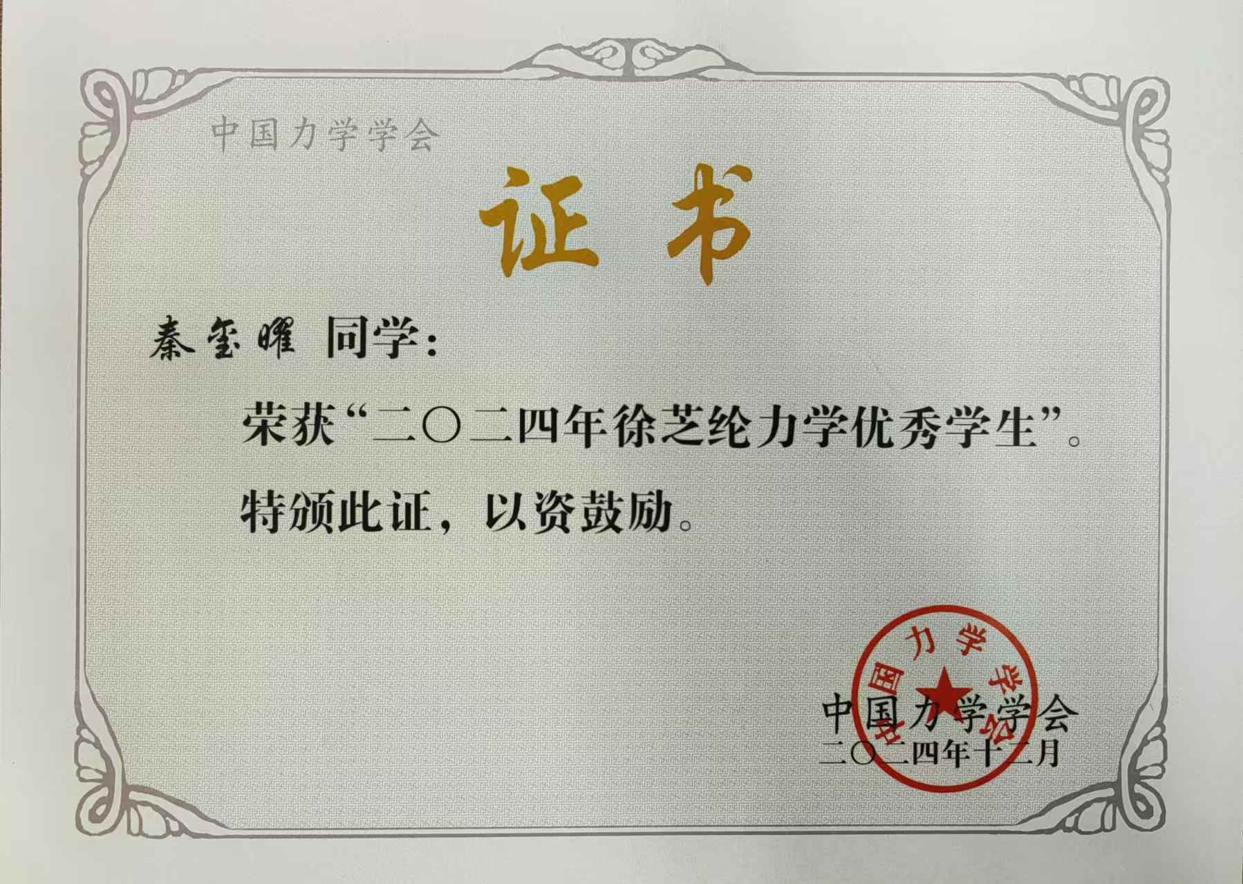秦玺曜同学荣获“全国徐芝纶力学优秀学生奖”,是樱花动漫