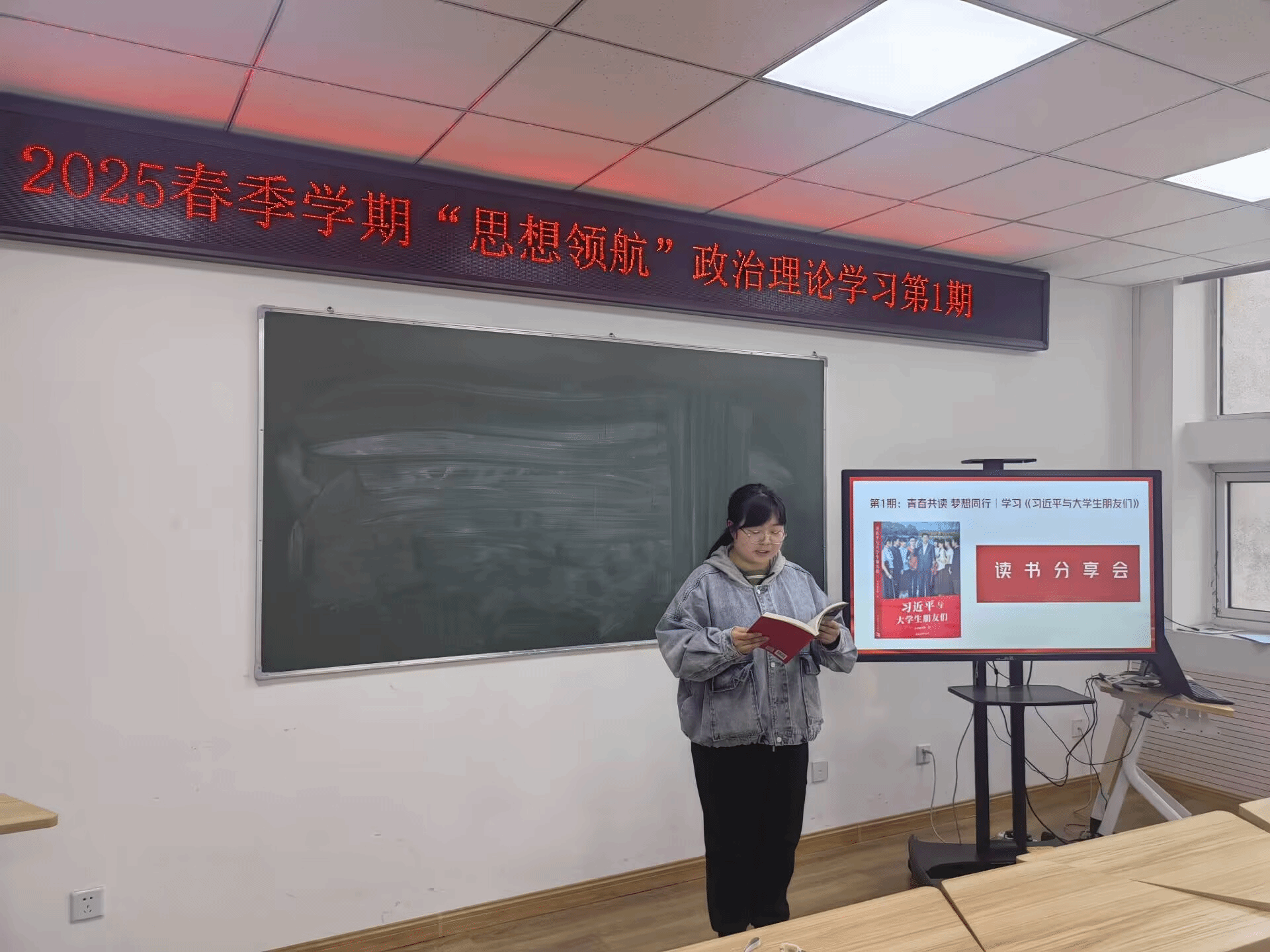 活动分为“主题讲座”与“学生分享”两大部分。辅导员张娟娟老师为2023级入党积极分子、学生骨干解读《习近平与大学生朋友们》的核心要义和精神实质,分享习近平总书记对青年一代的殷切期望和对大学生的亲切关怀。通过深入剖析习近平总书记讲给大学生的“有信念、有梦想、有奋斗、有奉献的人生,才是有意义的人生”这句话,让同学们明白,这句话深刻揭示了人生的价值所在,它不仅是大学生成长的方向,更是实现自我、贡献社会的行动指南。