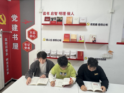 “党建图书角”旨在为广大学生提供学习交流的平台,通过在图书角借阅书籍,促进资源共享、以书会友、共同进步。图书角“上线”后,功能型党支部依托党建图书角,组织学生利用业余时间阅读相关书籍,助力学生及时了解党史与党情,充电蓄能,也让学生党建工作更上一层楼,提升功能型党支部的向心力和凝聚力。
