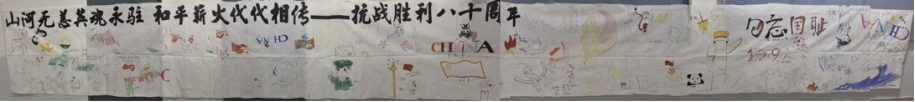 经过两小时精心创作,一幅融合历史沧桑与时代生机的巨画跃然呈现。画卷通过艺术手法,将破碎山河与盛世图景交织,展现战争与和平的时空对话。同学们用一幅长十米的集体画作致敬历史、传递和平信念,展现了青年一代的爱国情怀与艺术创造力。