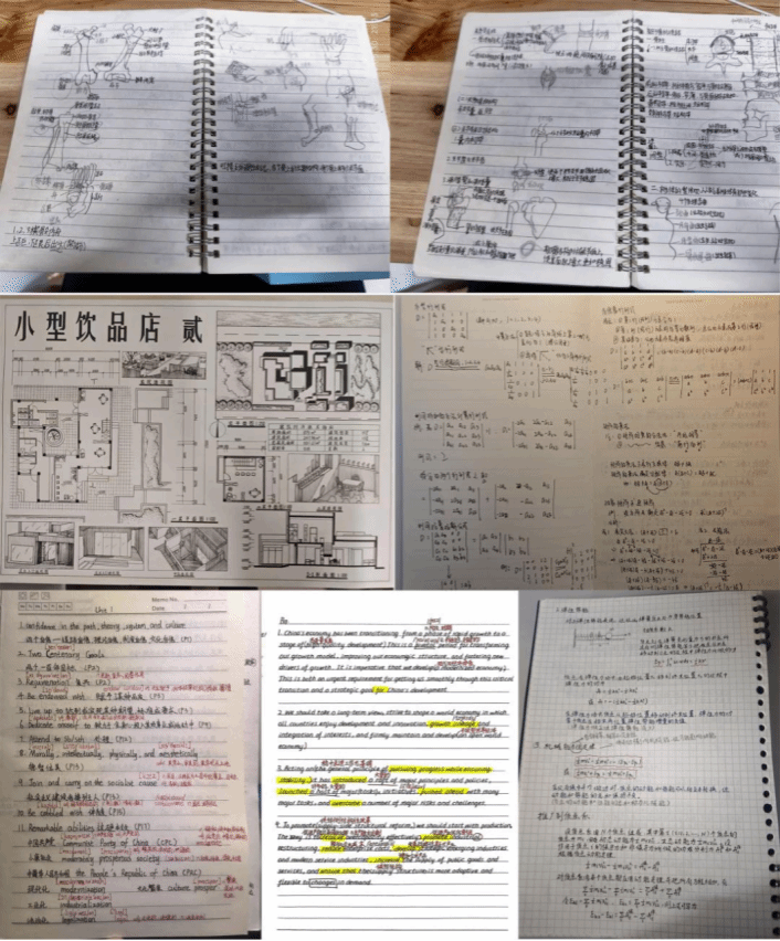 本次活动精心遴选并集中展示了涵盖高等数学、线性代数、大学物理、英语、思想政治理论等全学科的百余份优秀学习笔记。展出的笔记各具特色,有的运用彩色荧光笔精准标注重点公式与易错点,条理分明;有的辅以详实的思维导图,系统梳理学科知识框架,逻辑清晰;更有针对课程重难点撰写的深度解析,见解独到。每一份笔记都生动体现了优秀学子严谨的治学态度、独特的学习逻辑与高效的记录方法。活动现场,同学们或驻足细览,或认真摘录关键内容,亦或是用电子设备拍摄记录宝贵资料,展现出强烈的求知欲。
