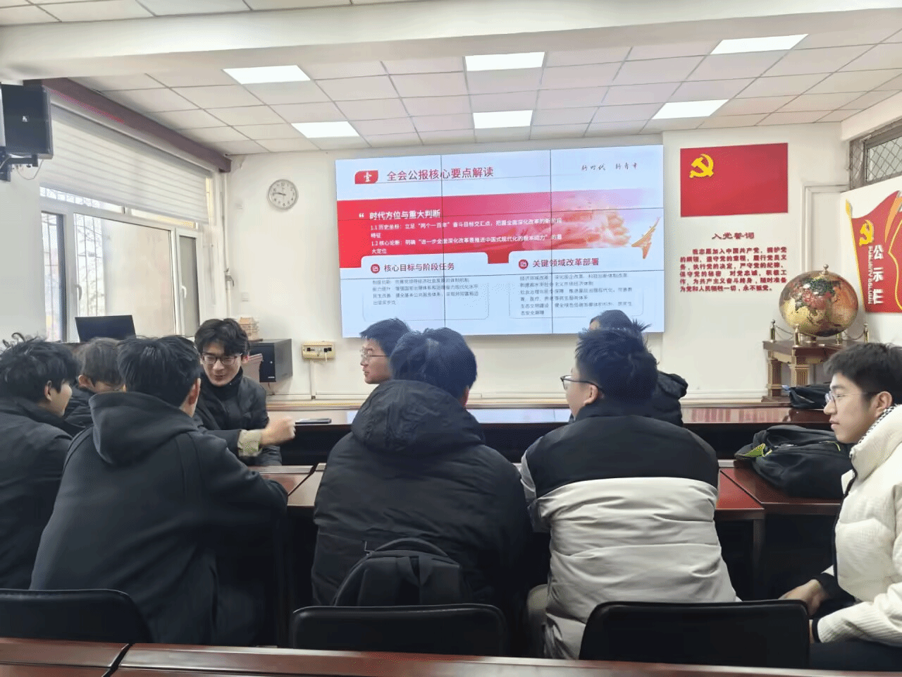 学习末尾,支部成员结合大三学业、实习筹备等实际,分享学习感悟。与会党员纷纷表示,要通过学习明晰国家发展蓝图,将以党员标准严格要求,在专业课程中深耕,为投身建筑领域、服务国家建设储备力量;更有同志提出要聚焦实习规划,在实践中检验所学,以专业行动践行全会精神。