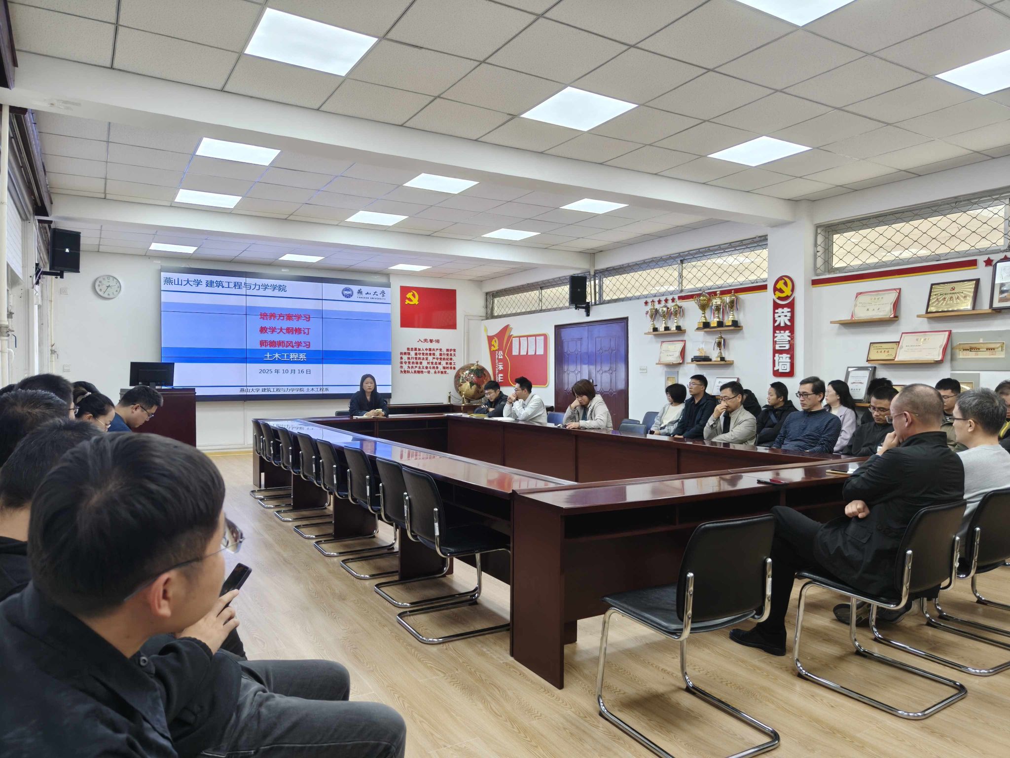 土木工程系在系会议室召开全系教师会议。会议由系主任李雨浓教授主持,副主任杨烨凯、吴吉贤、陈正心及全体教师参加。会议针对人工智能背景下的教学大纲修订展开深入研讨。