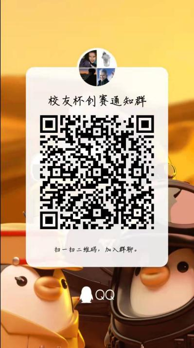 主要任务:完成报名的同学,请每队队长加入QQ群(群二维码如下)准备比赛,确认小组参赛成员信息。