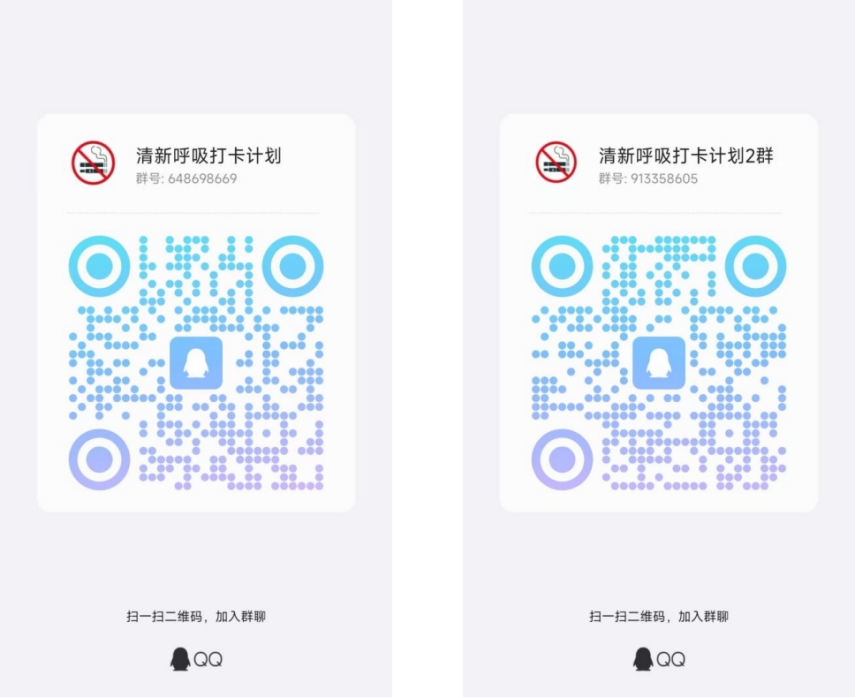 “清新呼吸计划”活动官方QQ群二维码:648698669(1群)、913356805(2群)